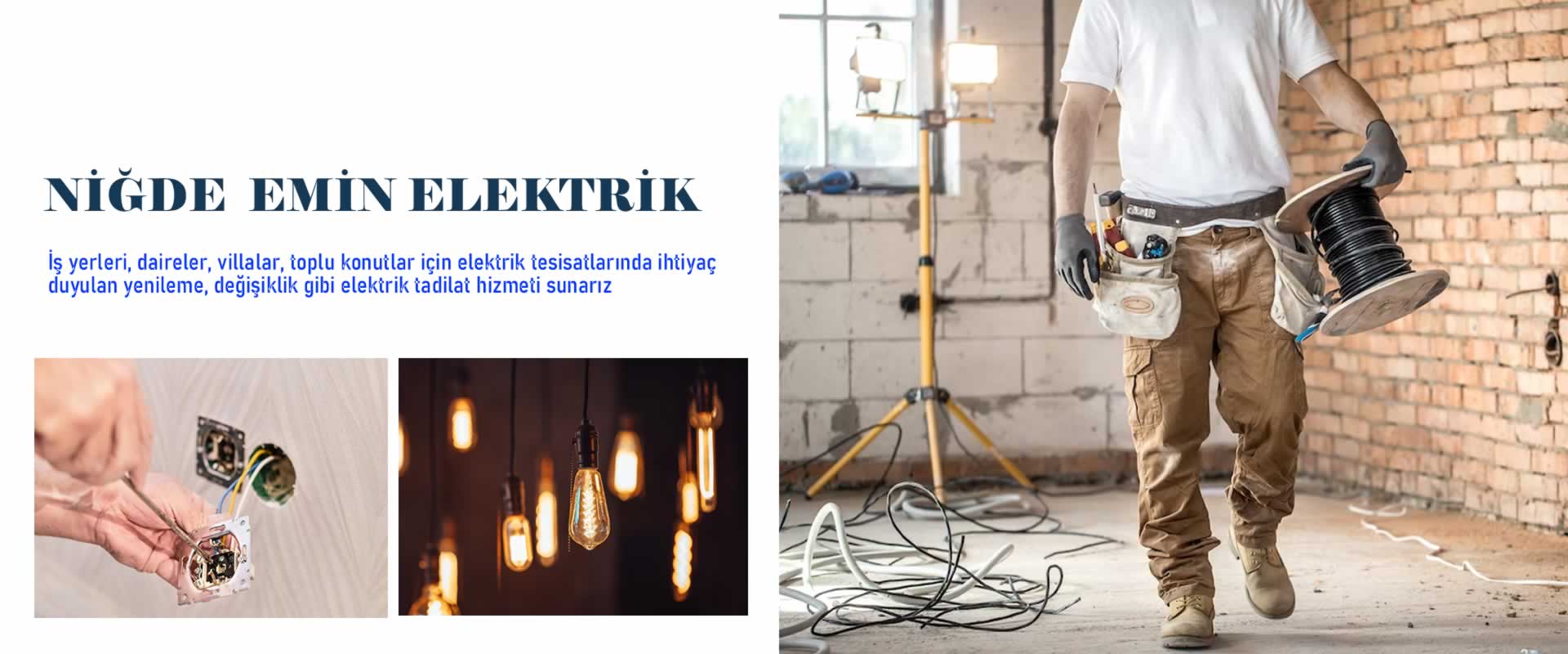 Niğde Emin Elektrik On yılı aşkın süredir ev ve iş yerlerinde elektrik sistemleri üzerine hizmet veren firmamız sektörün öncü kuruluşları arasındadır. Firmamızın en önemli misyonu müşteri memnuniyetidir. Bizleri tercih eden müşterilerimizin güvenliğini en iyi şekilde sağlayarak rahat hareket etme imkanı sunmaktayız.
